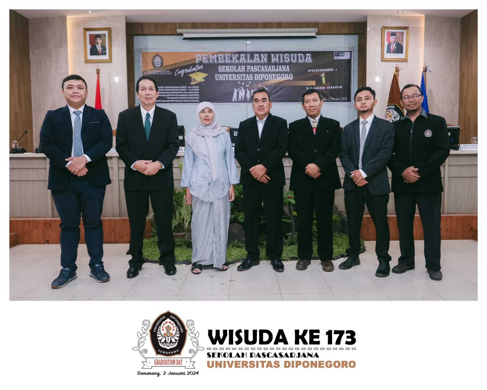 Pembekalan Wisuda Sekolah Pascasarjana Universitas Diponegoro Periode Ke-173 Tahun 2024 di laksanakan pada hari Jum’at, 2 Februari 2024 bertempat di Ruang Sidang Utama, Lt. I, Gedung TTB. A Sekolah Pascasarjana Universitas Diponegoro.
