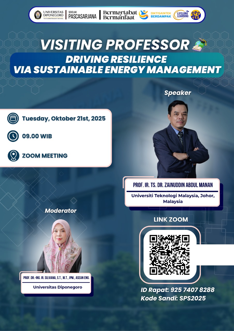 📢 Visiting Professor: Driving Resilience Via Sustainable Energy Management📢 Kami dengan hormat mengundang Bapak/Ibu untuk menghadiri Visiting Professor bersama: 👨🏫 Narasumber:Prof. Ir. Ts. Dr. Zainuddin