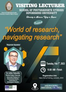 Sekolah Pascasarjana Universitas Diponegoro Semarang akan mengadakan Visiting Lecturer dengan tema “World of Reasearch Navigating Research” pada tanggal 07 Februari 2023 pukul 10.00 WIB –