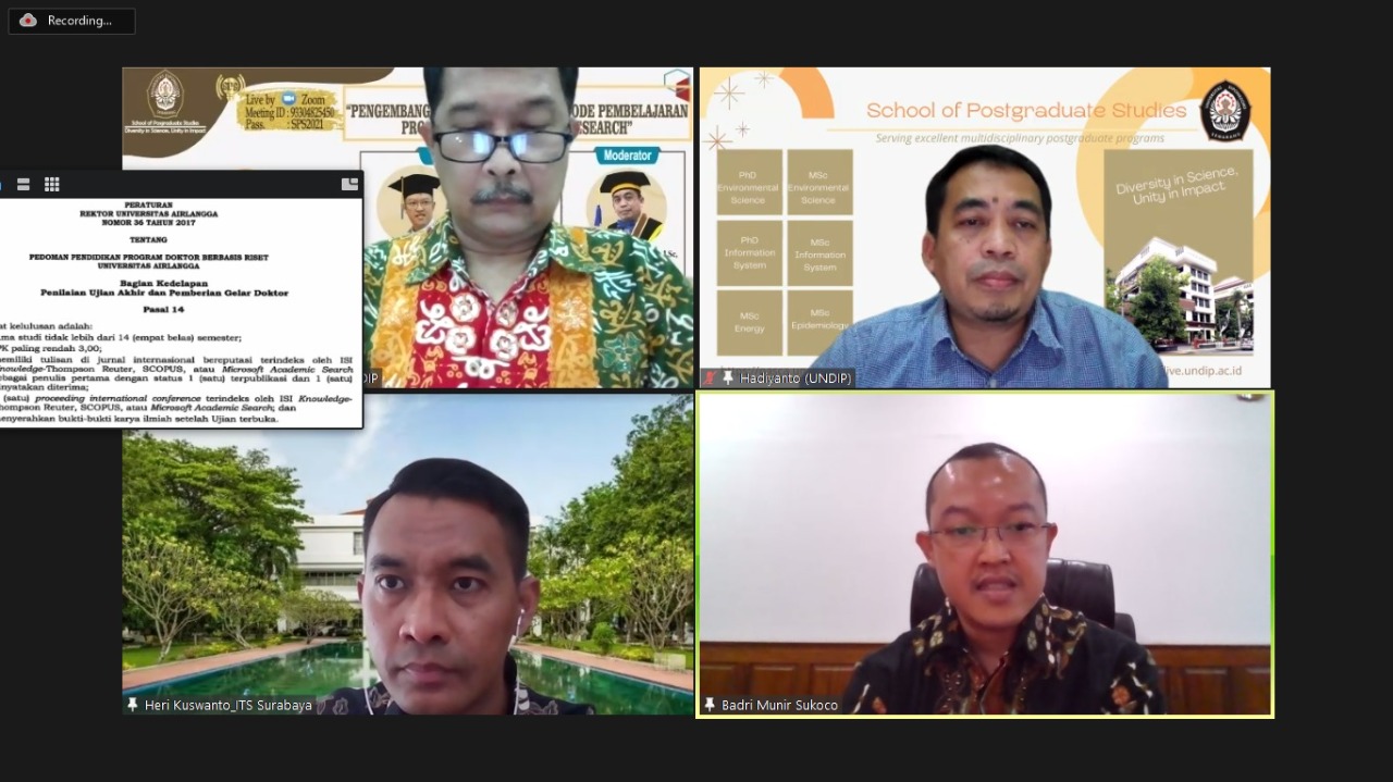 - Badri Munir , S.F. MBA, Ph.D – Direktur Sekolah Pascasarjana Universitas Airlangga dengan materi : Best practice Sekolah Pascasarjana UNAIR dalam pelaksanaan Program Pascasarjana by Research