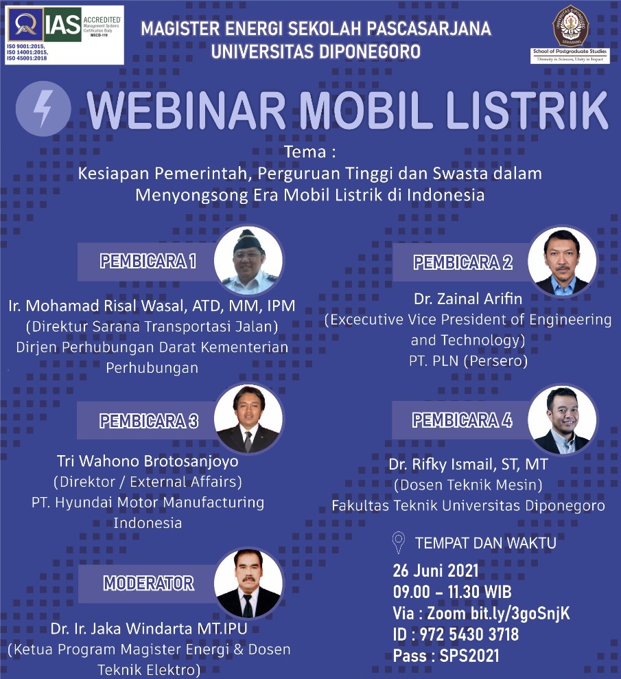 Magister energi melakukan Webinar Mobil Listrik dengan Tema Kesiapan Pemerintah, Perguruan Tinggi dan Swasta dalam menyongsong Era Mobil Listrik di Indonesia.